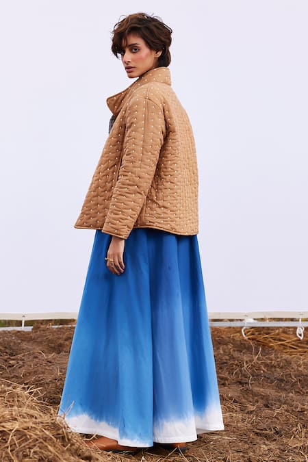 Buy_Kharakapas_Beige Cotton Mandarin Collar Barn Stand Quilted Jacket _Online_at_Aza_Fashions