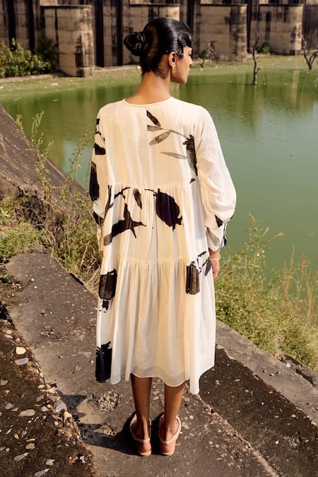Buy_Kharakapas_Black Cotton Round Neck And White Floral Printed Midi Dress _Online_at_Aza_Fashions