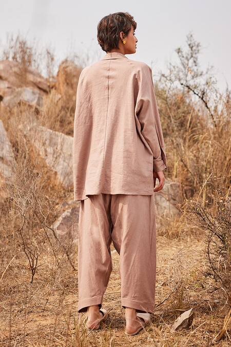 Buy_Kharakapas_Brown Linen Collared Dune Shirt And Salwar Pant Co-ord Set _at_Aza_Fashions