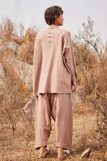 Rosy brown salwar pant crafted in linen fabric featuring side pockets