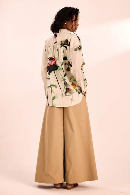 Off-white shirt in mul cotton featuring watercolor-inspired prints on the sides and sleeves