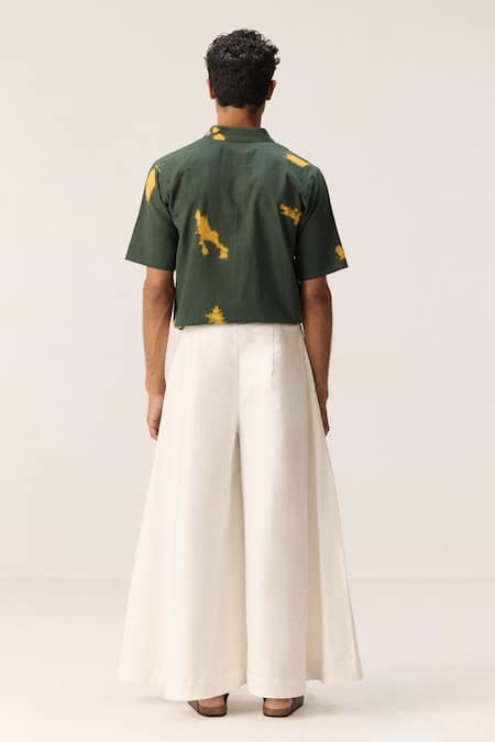 Buy_Kharakapas_White Oxford, Cotton Flared Trousers_Online_at_Aza_Fashions