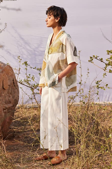 Buy_Kharakapas_Off White Cotton, Twill Verdure Pant _at_Aza_Fashions