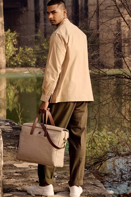 Buy_Kharakapas_Beige Twill, Cotton Vesper Jacket _Online_at_Aza_Fashions