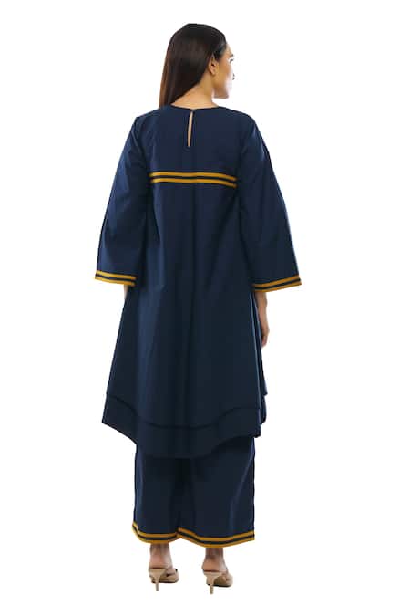 Blue Cotton, Poplin Square Neck Double Layered Dress Pant Set