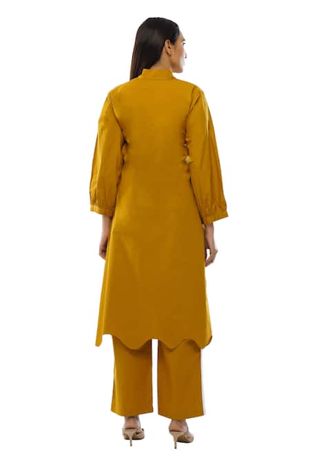 Yellow Mandarin Collar Mustard Panelled Dress Pant Set