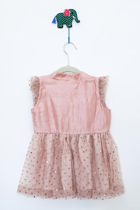 Peach Raw Silk Embroidered Sequin Peplum Kurta With Palazzo