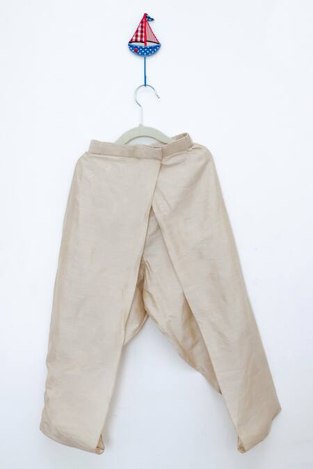 Teal silk hand embroidered peplum top featuring a shawl collar and cap sleeves. Paired with a beige dhoti pant made of cotton silk.