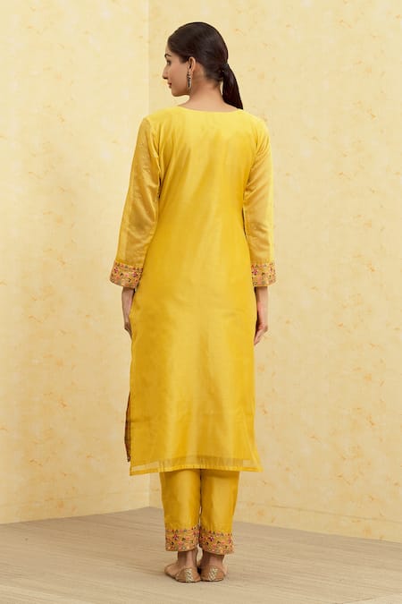 Gold Kurta And Pant Soft Chanderi Embroidered Floret Pattern Set