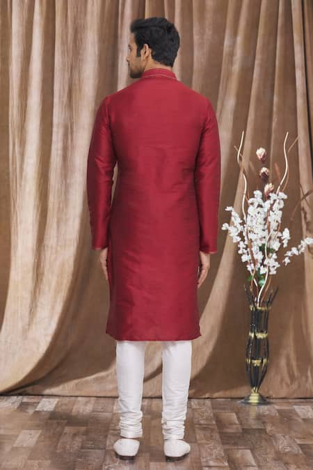 Maroon Silk Embroidery Placket Kurta