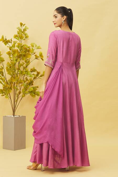 Purple Embroidery Floral And Draped Gown