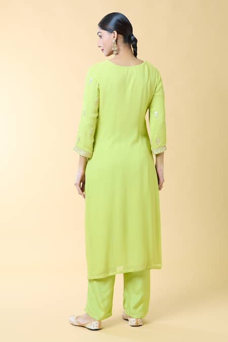 Green Georgette, Silk Lace, Embroidery Round Pittan Straight Kurta And Pant Set