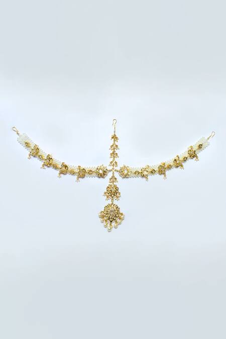 Buy_Kiara_White Kundan And Stone Studded Maangtikka_Online_at_Aza_Fashions