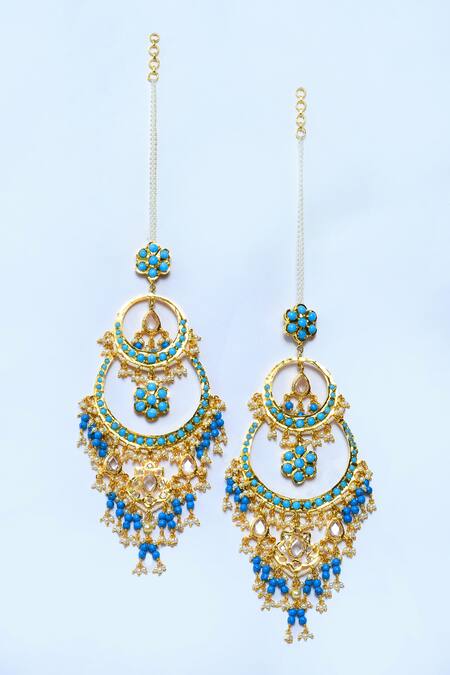 Buy_Kiara_Blue Tassels, Stones Kundan Studded Chandbalis_Online_at_Aza_Fashions