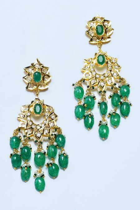 Buy_Kiara_Green Beads, Stones Onyx Embellished Earrings_Online_at_Aza_Fashions