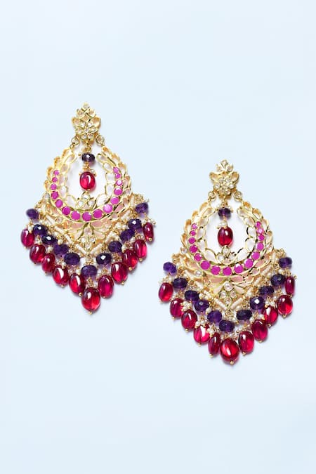 Buy_Kiara_Pink Stones Semi Precious Embellished Earrings_at_Aza_Fashions