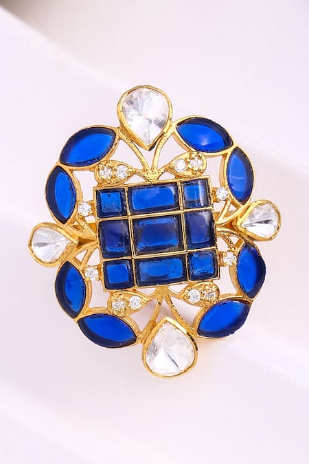 Buy_Kicky & Perky_Gold Plated Stones Abstract Shaped Ring _Online_at_Aza_Fashions