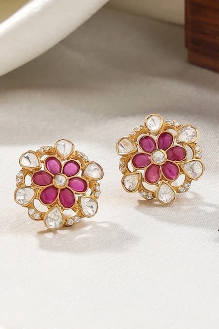 Buy_Kicky & Perky_Gold Plated Stones Floral Stud Earrings _at_Aza_Fashions