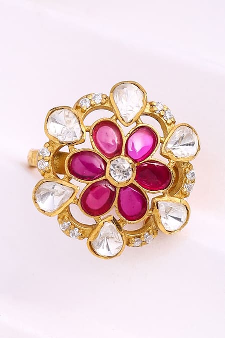Buy_Kicky & Perky_Gold Plated Stones Floral Cutwork Ring _Online_at_Aza_Fashions