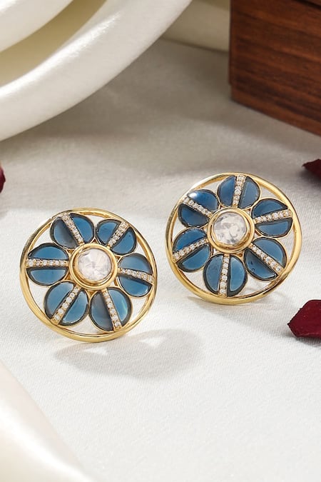 Buy_Kicky & Perky_Gold Plated Stones Flower Cutwork Stud Earrings _Online_at_Aza_Fashions