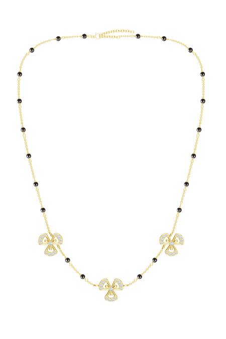 Moissanite motifs in a floral design, Black bead accents, Adjustable length with a 2-inch extension