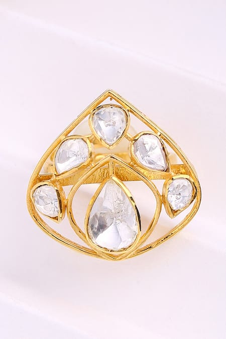 Buy_Kicky & Perky_Gold Plated Stones Embellished Cutwork Ring _Online_at_Aza_Fashions