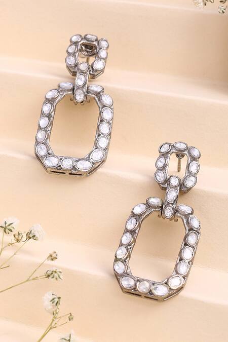 Shop_Kicky & Perky_Silver Plated Stones Embellished Dangler Earrings _Online_at_Aza_Fashions