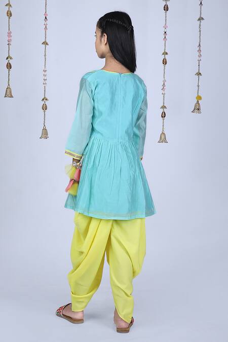 Buy_Kids Lane_Green Chanderi, Crepe Embroidery Kurta And Dhoti Pant Set_Online_at_Aza_Fashions