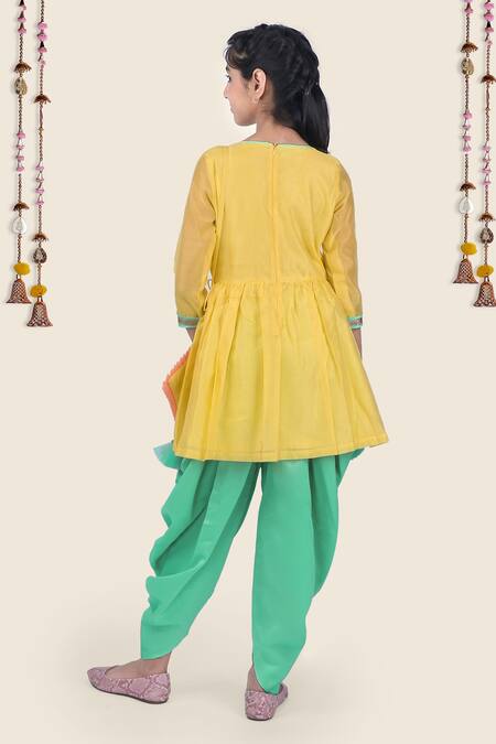 Yellow Chanderi, Crepe, Taffeta Embroidery Kurta And Dhoti Pant Set