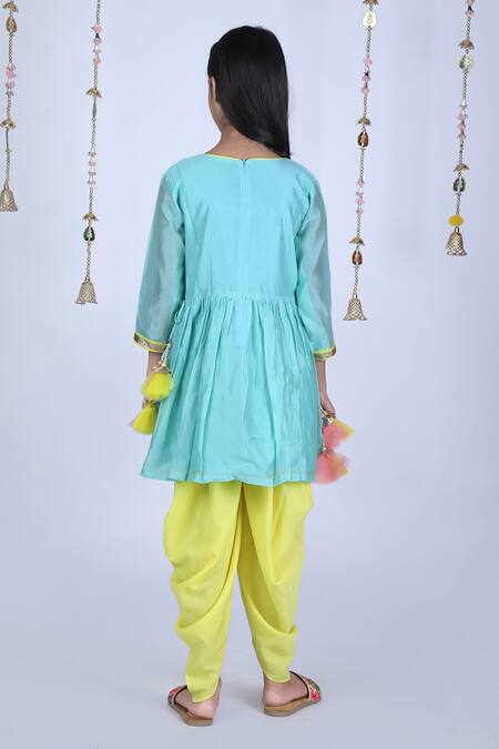 Buy_Kids Lane_Green Chanderi, Crepe Embroidery Kurta And Dhoti Pant Set_Online_at_Aza_Fashions