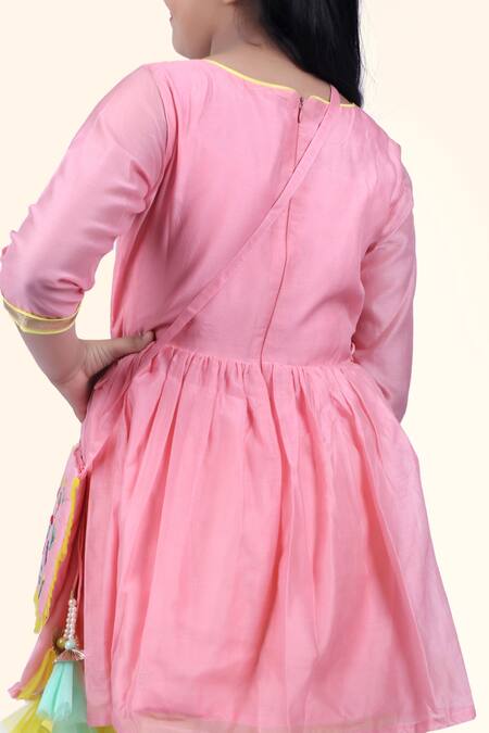 Pink Chanderi, Crepe, Taffeta Embroidery Kurta And Dhoti Pant Set