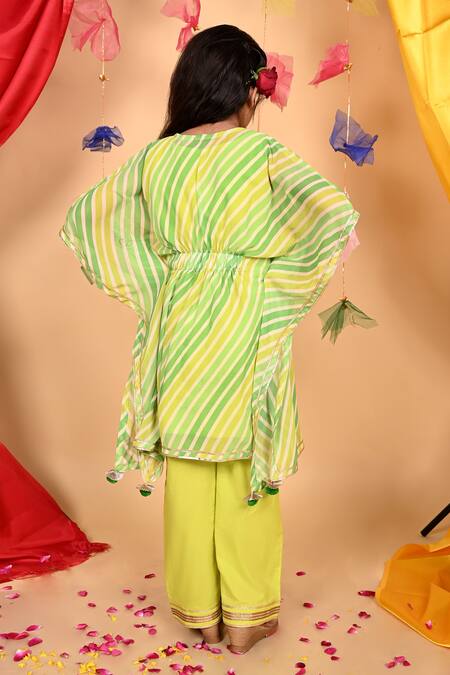 Buy_Kids Lane_Green Georgette, Cotton Mirrors Leheriya Print Kaftan And Pant Set_at_Aza_Fashions