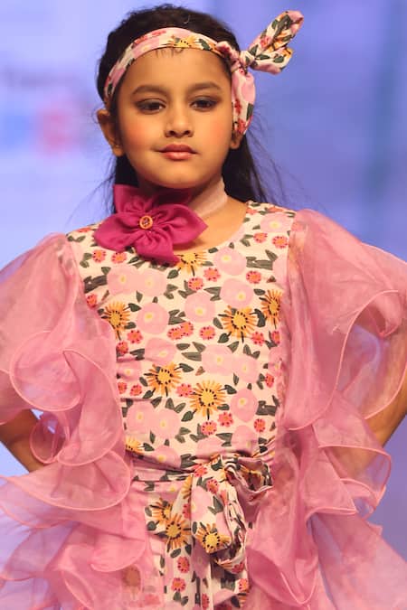 Multi Color Muslin, Organza, Cotton Ruffles Floral Print Dress