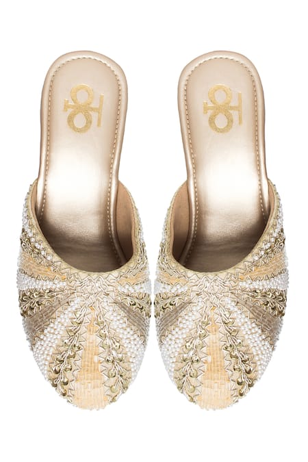 Double cushioned for comfort, Transparent block heel design, Intricate zardozi embroidery