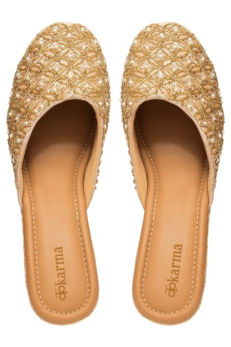 Intricate cutdana and sequin embroidery, Closed toe design, Soft cushioned insole for comfort