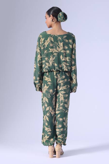 Green Mohair, Crepe Round Neck Beetle Print Jogger Set