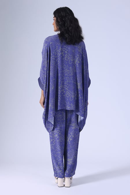 Buy_Klad_Blue Crepe, Mohair V-neck Botanic Print Kaftan Set_Online_at_Aza_Fashions