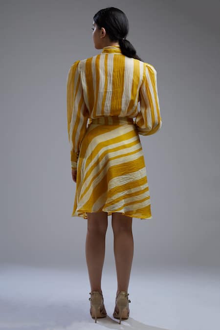 Yellow top with printed stripes all over & tie-up bow neckline detail.
