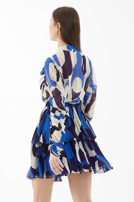 Abstract pattern, Bishop sleeves, Bow tie-up at neck, Note:The skirt worn by the model is not for sale