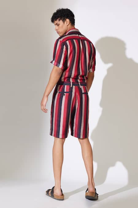 Red Cotton, Silk Striped Shorts