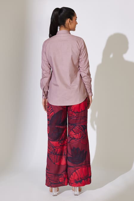 Peach Poplin, Cotton Cut Work Collared Floral Bead Embroidered Shirt