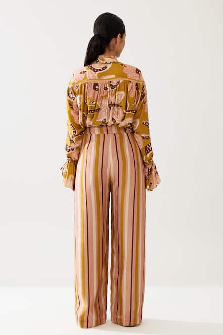 Mustard yellow and pink pant featuring a vibrant stripe print