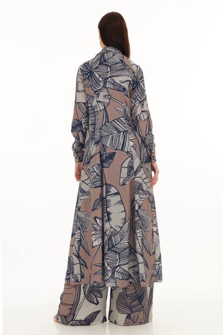 Cream and brown cape featuring a tropical floral pattern
