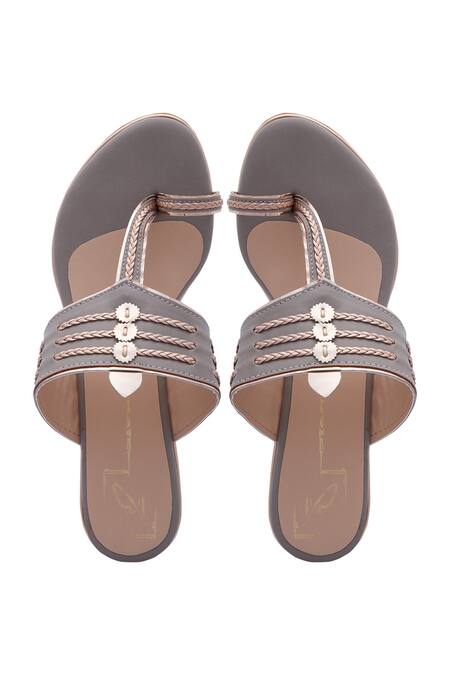 Braided grey & rose gold wedges.