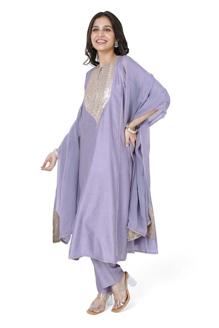 Purple Anarkali Chanderi Embellished Sequin Round Pant Set