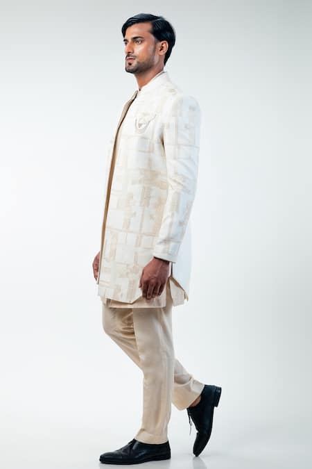 Off White Cotton Silk Hand Embroidery Abstract Sherwani Trouser Set