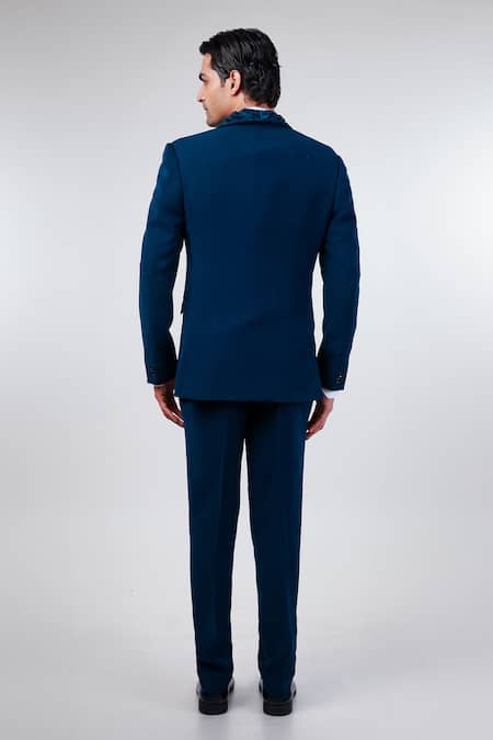 Blue Cupro Lapel Collar Tuxedo Pant Set