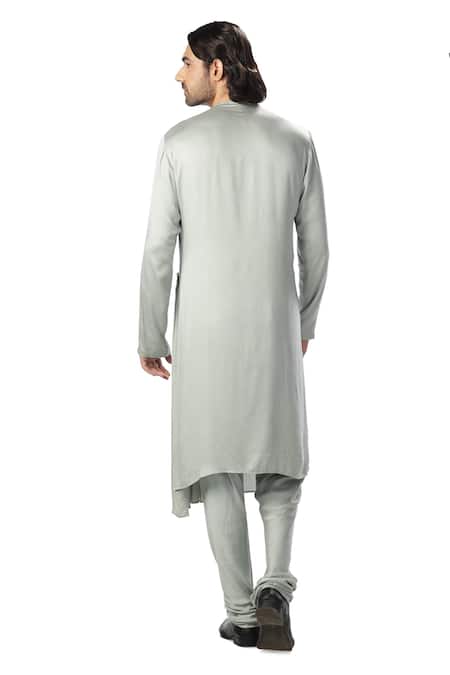 Pastel pista green cotton silk pleated kurta with asymmetrical hem. Comes with a churidar.