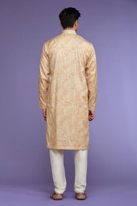 Buy_Kora By Nilesh Mitesh_Orange Silk Embroidered Thread And Sequin Work Floral Kurta Set_Online_at_Aza_Fashions