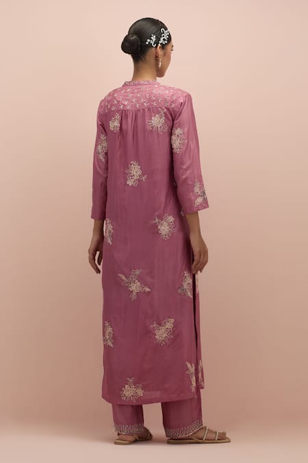 Pink Silk Embroidery, Sequins, Beads Printed Applique Work Kurta And Pant Set